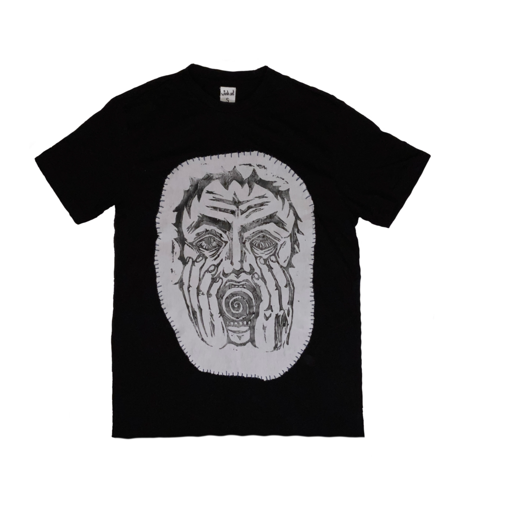 ART by heli T-shirt "Ich-Zerfall" pt.1 Textilfarbe + Linoldruckselbstangefertigter Linolschnittverfügbare Farben:schwarzer Print auf weißem Tshirt 25€ T-shirt "Ich-Zerfall" pt.2 Textilfarbe + Linoldruckselbstangefertigter Linolschnittverfügbare Farben:schwarzer Print auf weißem Stoff; auf schwarzes Tshirt aufgesticktStickfaden: lila, grün, blau 30€ Interesse? Möchtest du ein T-shirt bestellen oder hast Fragen, erreichst du mich per E-mail.Danke für deine Unterstützung! Waschanleitung für lange Haltbarkeit:>40´Gradauf links drehen